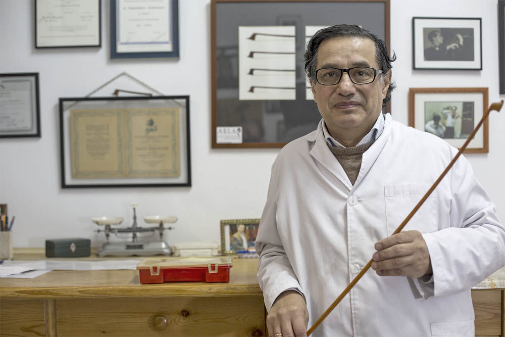 He has been established in Madrid since 1983, and is in demand throughout Spain, as well as visited by musicians from many different countries who come with valuable bows to be repaired or rehaired in his shop Arcos Gonzalez.