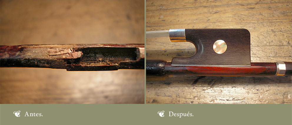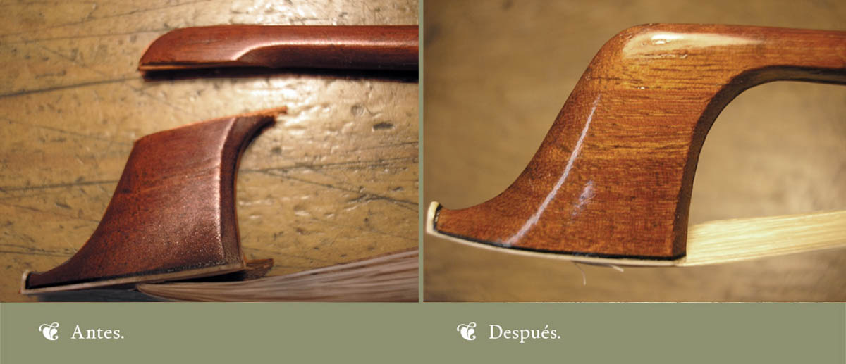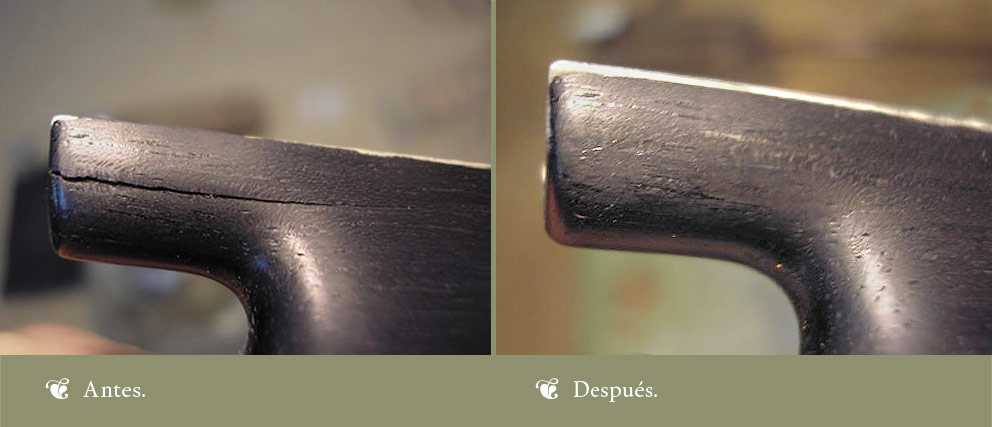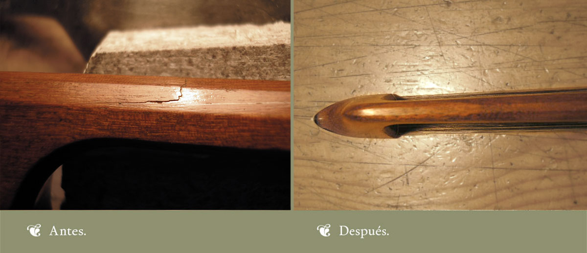 La mayoría de las fracturas de los arcos o de las nueces se pueden restaurar. Sólo puede hacerlo un arquetero experto si se quiere el mejor resultado. A continuación os mostramos algunos ejemplos: